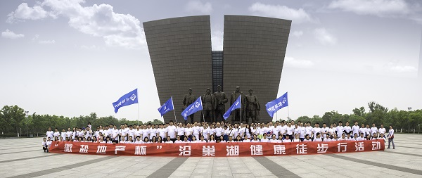 毅路向前,堅持到底!5月14日上午7時45分,2016年“徽鹽地產(chǎn)杯”在肥鹽業(yè)系統(tǒng)職工健身走活動啟動儀式在合肥市濱湖新區(qū)渡江戰(zhàn)役紀(jì)念館南廣場舉行。省公司領(lǐng)導(dǎo)石俊、王良貴、顏?zhàn)谌A、許建勝、楊曉彬、王思軍等出席儀式,并為來自全系統(tǒng)在肥的200余名職工領(lǐng)走。